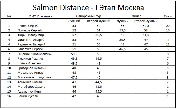 Результаты финала Seatrout Distance таковы: