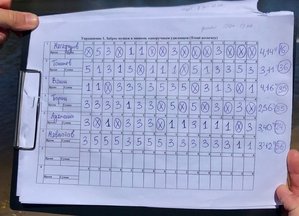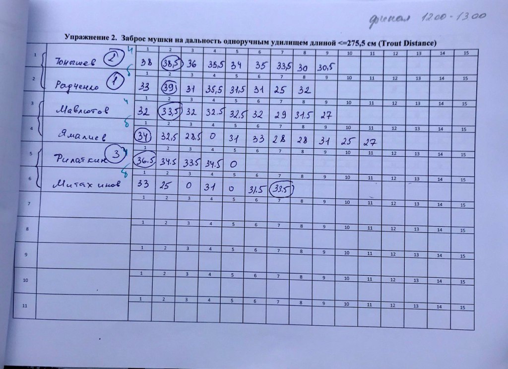 Здесь публикую фото «живых» протоколов, если фото нет, то фотфтальные протоколы. Все официальные протоколы тут, там же можно ознакомиться с правилами соревнований по нахлыстовому кастингу.