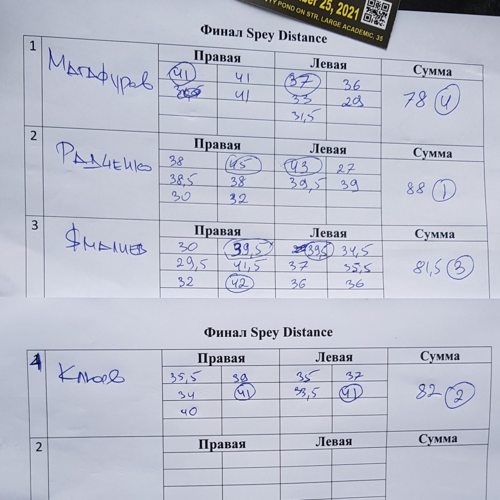 В финале — Магафуров, Радченко, Ямалиев и Клюев. Штиль или лёгкий встречный ветер. Для меня это был первый старт, когда не пытался «вломить», а спокойно кидал. Доволен.