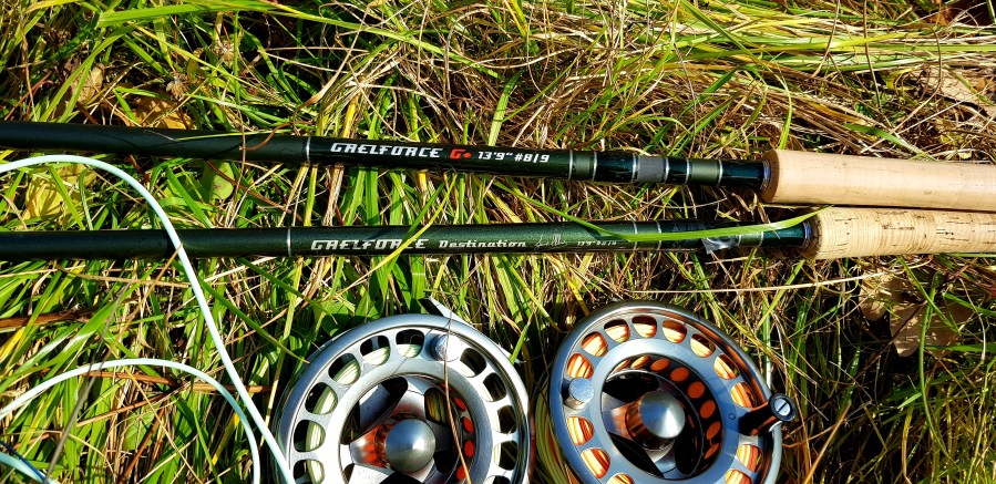 31 октября 2021 — отличный денек! Помимо удивительно тёплой и солнечной погоды, у меня на руках два топ-топовых нахлыстовых двуручных удилища — шестичастный Gaelforce Destination 13’9″ #8/9 и новейшая модификация этой модели с приставкой G+ и поясняющей надписью — Graphen. Первая — моя радость, любовь и универсальный лососевый инструмент в последние 4 года (почитать можно здесь), вторая — первая в России, приобретена и предоставлена для теста товарищем по оружию Сергеем.