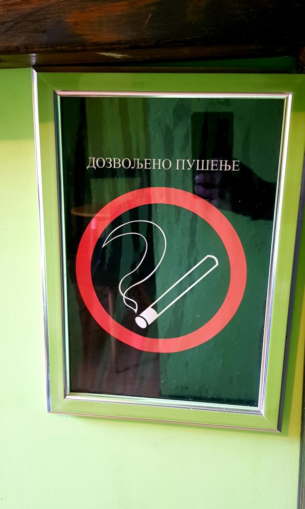 Говорят что сербы курят все, много и везде. И, похоже, это правда. Наблюдение в магазинчике поблизости: две продавщицы, одна на кассе, вторая на крыльце курит. Потом меняются. И так постоянно — одна на кассе, вторая с папиросой.