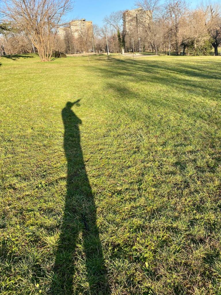 Поначалу расстраивало что застройка Белграда очень плотная и отыскать подходящую лужайку для тренировок нахлыстовых оверхедных дисциплин будет проблематично. Но постепенно отыскались пакри со сквермаи и короткие дороги к ним. Вот, например, общедоступное футбольное поле в парке, в дальнем далеке я машу Траут Дистансом:
