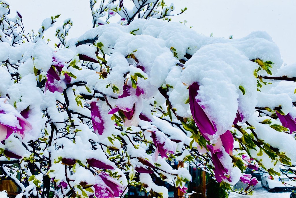 4 апреля 2023. Сегодня в Белграде сильный снегопад. Это в принципе невиданное дело для апреля. И снега за сутки выпало больше чем за всю прошедшую, как еще недавно казалось, зиму. Отцветающая магнолию в снегу выглядит странно: