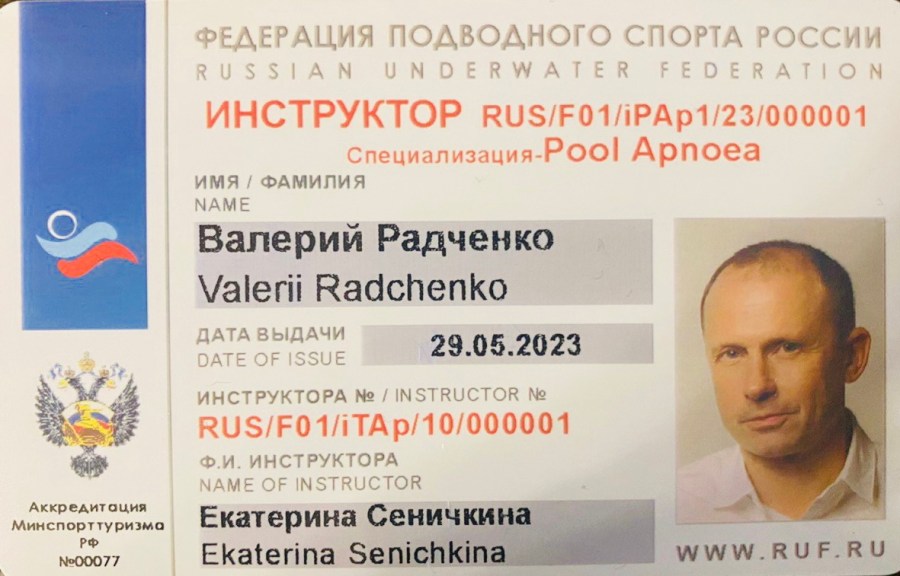 Фридайвинг. Я был инструктором системы Molchanovs по фридайвингу в бассейне и на открытой воде, сейчас же получил еще и сертификацию по системе CMAS.